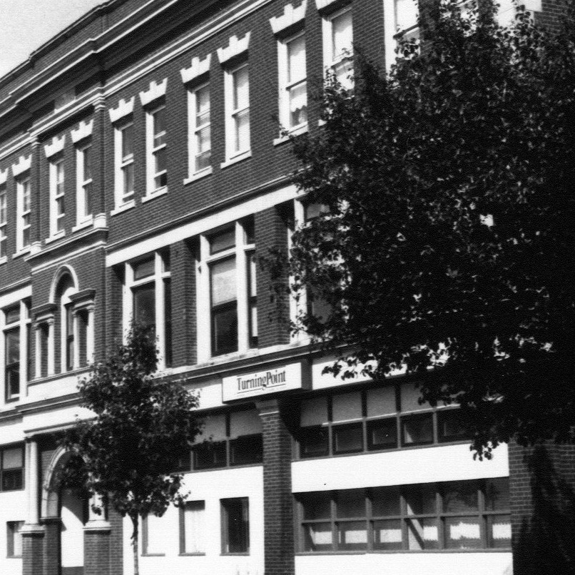 The Cabot Street Building — TurningPoint's early home, above Klinks Bakery. The sign was new. The ambition was bigger.